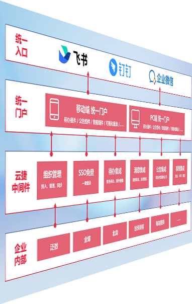 对协作平台提供支持服务,,支持企业应用与协作平台对接,,,,包含组织同步、、、消息集成、、、待办集成等。。支持目前主流的协作平台:钉钉、、、企微和飞书。。